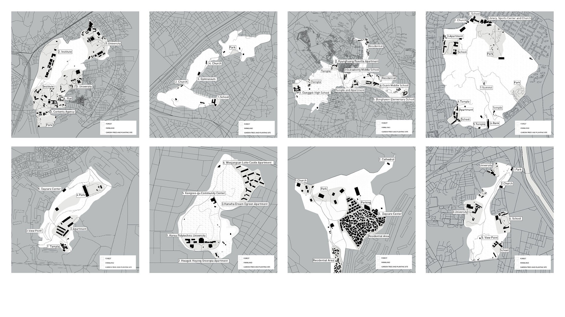 Seoul Mini-Mountains is a research project that explores the overlooked mountain remnants embedded within the dense urban fabric of Seoul. These steep, irregular fragments—often excluded from formal development—exist at the intersection of ecology, topography, and urban marginality. Through mapping, fieldwork, and photographic observation, the project reconsiders these terrains as liminal spaces of resistance and potential. Rather than treating them as leftover or inaccessible, the research reframes them as spatial gaps that invite new readings of the city—where nature is not erased, but actively shapes urban experience and imagination.