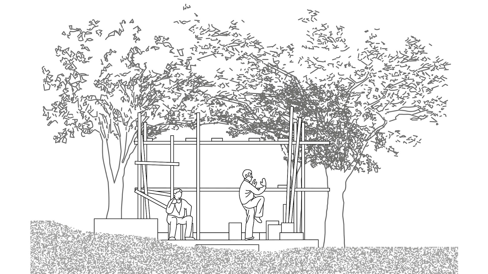 Duckling Hill was a teaching and research seminar that investigated the informal appropriation of an urban hillside embedded within the high-density new town of Tseung Kwan O, Hong Kong. Emerging as a vital buffer zone between public housing estates and nature, the hill had been gradually transformed by local residents through self-built paths, shelters, gardens, and ritual spaces. The students examined these soft, user-driven infrastructures as expressions of collective care, ecological knowledge, and everyday inhabitation. Through fieldwork, documentation, and design research, students explored how people-centered, non-professional interventions challenge conventional planning approaches and reveal alternative models for understanding, representing, and designing urban landscapes.
