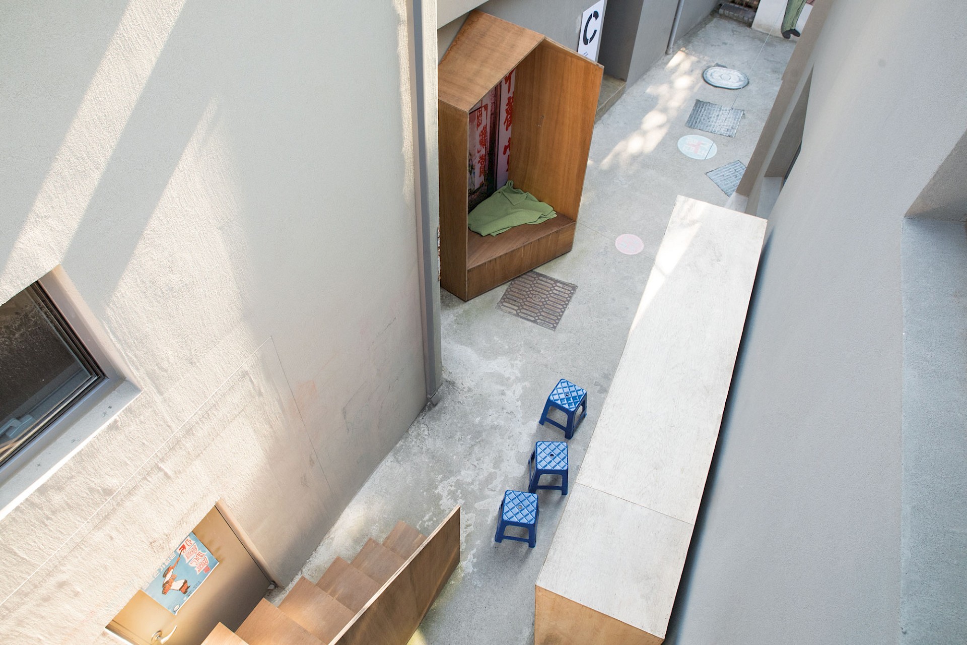 Inverted Hong Kong was an installation on show at the Cities Exhibition during the Seoul Biennale of Architecture and Urbanism. Located within the recently renovated Donuimun Village, the installation played with the boundary lines of an interstitial lane. The audience was challenged with representing a city as a system of thresholds where the domestic and the collective overlap. This spatial setup was an opportunity to transpose the reflections and insights gained during the observation and testing of liminal sites in Hong Kong, mapping them to another interstitial site in Seoul.